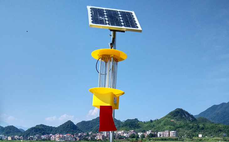 什么是太陽能頻振式殺蟲燈?太陽能頻振式殺蟲燈的效果怎么樣?云飛科技從事農(nóng)林病蟲害的遠程監(jiān)控、防治器械的研發(fā)、生產(chǎn)的負(fù)責(zé)人介紹說:太陽能頻振式殺蟲燈是利用害蟲趨光性進行誘殺的一種物理防治方法。該殺蟲燈是通過燈頂部的光電板,在白天時將太陽能轉(zhuǎn)化為電能,并儲存在底部的蓄電池里,到了晚上自動亮起來的太陽能燈,利用害蟲較強的趨光性、趨波性、趨色性的生理特性,將光的波長、波段、波的頻率設(shè)定在特定范圍內(nèi),近距離用光、遠距離用波,加以誘導(dǎo)害蟲本身產(chǎn)生性信息引誘成蟲撲燈,燈外配以頻振式高壓電網(wǎng)觸殺,使害蟲落入燈下的接蟲袋內(nèi),達到殺滅害蟲的目的。